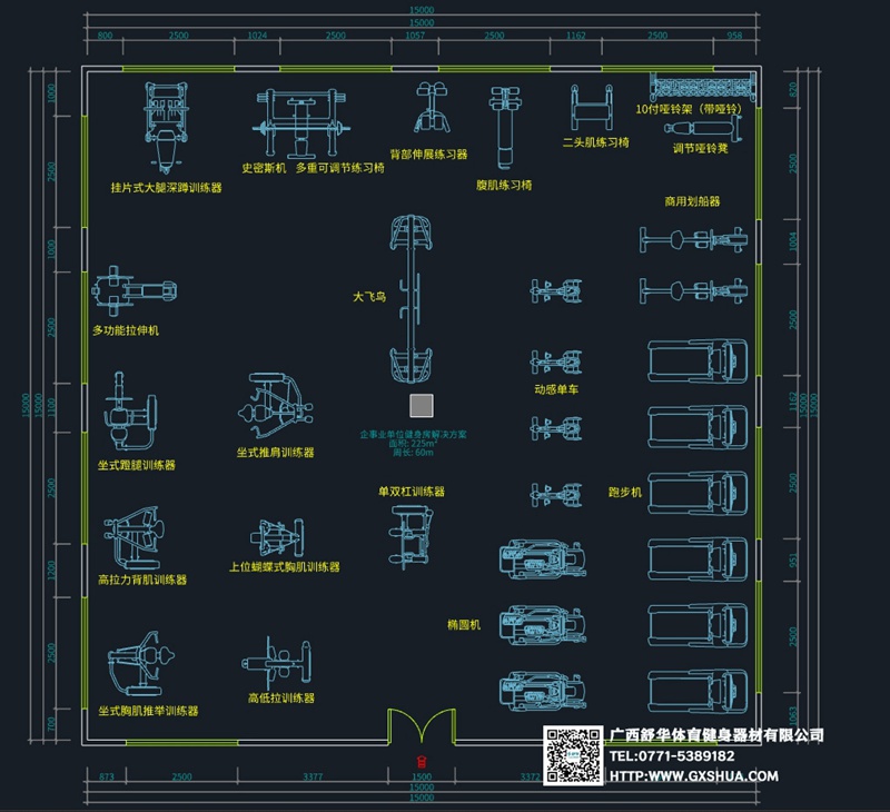 据相关调查显示,员工的健康状况与企业的整体效益密切相关,健康的员工往往能展现出更高的工作效率和更低的缺勤率。面对这一现实,越来越多的企事业单位开始重视在内部设立健身房。在此背景下,我们针对面积为225m²的健身空间,精心设计了一套全面的健身房解决方案,以满足企事业单位及其员工的健身需求。